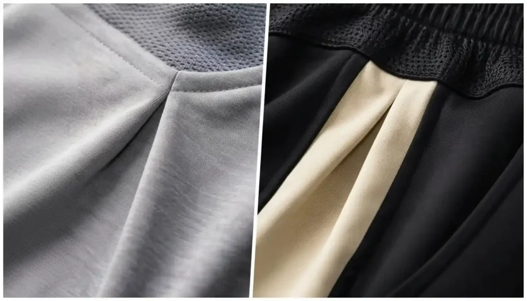Inner fabric layers providing clean garment edges.