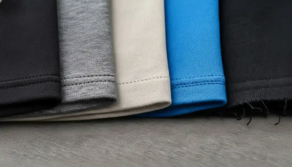 Single-fold, double-fold, blind, coverstitched, or raw hems.