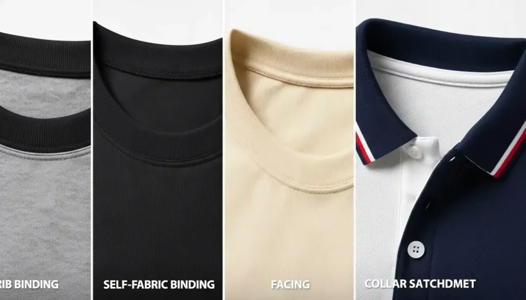 Rib binding, self-fabric binding, facing, or collar attachment.