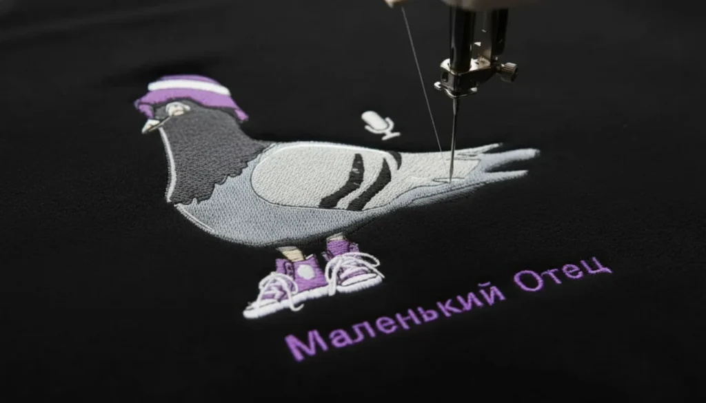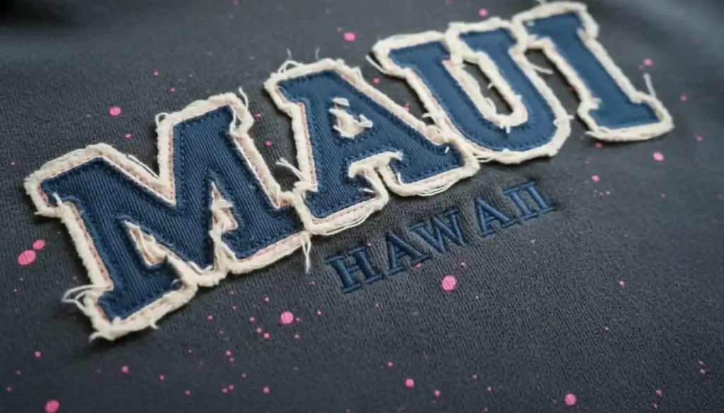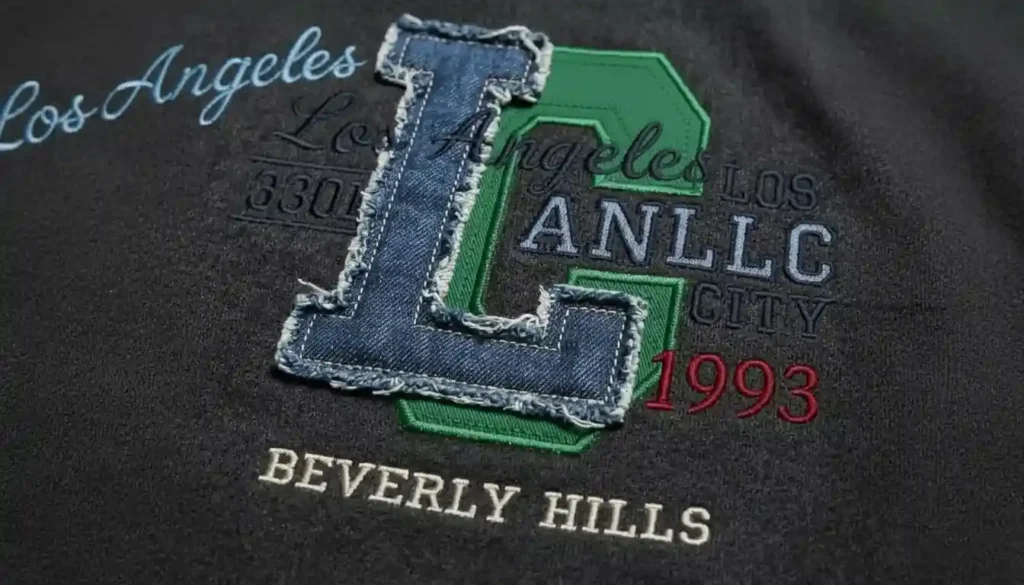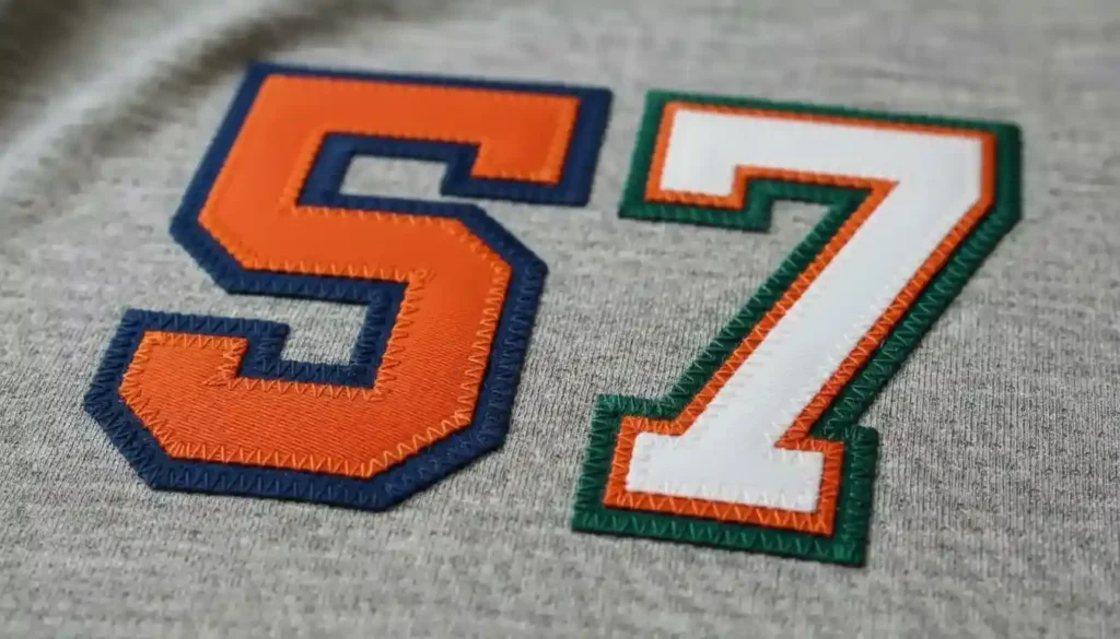 Durable layered embroidery with bold outlines for sportswear.